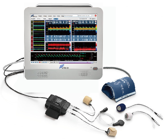 ③呼氣末CO2分析儀(或模塊)。此儀器是無創(chuàng)的檢查設(shè)備。常采用紅外線法或者質(zhì)譜儀法測(cè)定呼氣末CO2。配備規(guī)格相同的鼻導(dǎo)管(一次性的消耗品)。④連續(xù)心電監(jiān)測(cè)儀。此儀器是無創(chuàng)的檢查設(shè)備。選配。目前大多數(shù)儀器通過CBFV的波形可以間接算出心率,但一些專業(yè)軟件需要配備連續(xù)心電監(jiān)測(cè)。⑤數(shù)據(jù)整合設(shè)備。選配。是整合以上多個(gè)數(shù)據(jù)達(dá)到同步輸入、輸出的設(shè)備(如多功能數(shù)據(jù)采集卡)。⑥選配其他設(shè)備。根據(jù)臨床研究的需要,監(jiān)測(cè)參數(shù)不同,選擇有創(chuàng)或者無創(chuàng)的檢查設(shè)備,如近紅外光譜儀(near-infrared spectroscopy,NIRS),用于無創(chuàng)測(cè)量局部腦氧飽和度;腦組織血氧監(jiān)測(cè)儀,用于無創(chuàng)測(cè)量局部組織氧分壓;腦血氧和血流監(jiān)測(cè)一體機(jī),屬新型設(shè)備,是以色列Ornim醫(yī)療有限公司的CerOx(將近紅外與局部低功率超聲結(jié)合,配無創(chuàng)探頭);顱內(nèi)壓監(jiān)測(cè)儀,配顱內(nèi)導(dǎo)管,用于有創(chuàng)測(cè)量顱內(nèi)壓;腦血流和無創(chuàng)連續(xù)血壓監(jiān)測(cè)一體機(jī),是新型設(shè)備,深圳市德力凱醫(yī)療設(shè)備股份有限公司的EMS-9D Pro(實(shí)現(xiàn)了腦血流及無創(chuàng)連續(xù)逐波血壓監(jiān)測(cè)的同輸入輸出,配無創(chuàng)自動(dòng)監(jiān)護(hù)探頭、壓力感應(yīng)指套等)。⑦專業(yè)分析軟件。包括離線分析和在線即時(shí)分析軟件。