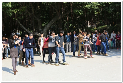 一場(chǎng)別開(kāi)生面的“熱身運(yùn)動(dòng)”,首先讓每個(gè)人都放開(kāi)了身心,營(yíng)造了一種緊張又刺激的團(tuán)隊(duì)氛圍,讓大家都快速投入到拓展活動(dòng)中去?!爸袊?guó)式問(wèn)候”,不僅僅讓德力凱這個(gè)“大家庭”中每個(gè)成員都增強(qiáng)了了解,夸張搞笑的回答,更是讓人忍俊不禁。緊張激烈的“有軌電車(chē)”,讓每個(gè)人都不斷磨合和摸索中,領(lǐng)悟到團(tuán)隊(duì)協(xié)作的重要性。而這個(gè)環(huán)節(jié)最后的兩組PK環(huán)節(jié),周?chē)烁甙旱膮群奥暎屨麄€(gè)現(xiàn)場(chǎng)掀起了一個(gè)不小的高潮,最后的勝利者更是實(shí)至名歸。