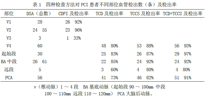 可見,聯(lián)合應(yīng)用TCD+CDFI或者聯(lián)合應(yīng)用TCD+CDFI+TCCS可以大大提高后循環(huán)缺血患者的檢出率。