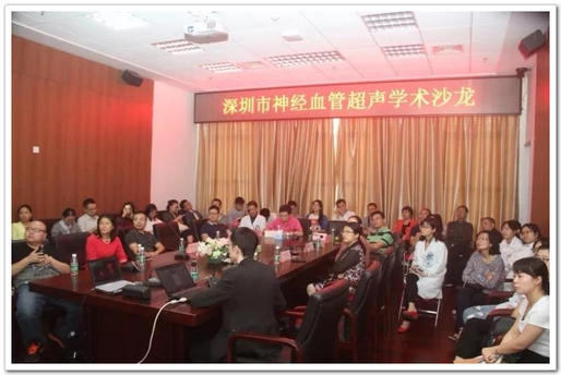 2017年10月24日下午15:00-17:30,由深圳市人民醫(yī)院神經(jīng)內(nèi)科組織的深圳市神經(jīng)血管超聲沙龍成功召開,圓滿結(jié)束。深圳市人民醫(yī)院神經(jīng)內(nèi)科腦血管超聲與栓子監(jiān)測(cè)實(shí)驗(yàn)室近年來在心腦聯(lián)合發(fā)泡試驗(yàn)、腦血流儲(chǔ)備能力各相關(guān)檢查、頸動(dòng)脈超聲、微栓子監(jiān)測(cè)、超聲輔助超時(shí)間窗腦梗死纖溶治療、TCCD、腦實(shí)質(zhì)超聲方面不斷取得突破,并召開了深圳市第一次專門針對(duì)神經(jīng)血管超聲的學(xué)術(shù)沙龍。50余人參加了學(xué)術(shù)沙龍,包括了來自深圳羅湖、南山、福田、寶安、龍崗、鹽田等該領(lǐng)域的同道,其中包括了神經(jīng)內(nèi)科、神經(jīng)外科、超聲科的同道,沙龍上大家就各個(gè)腦血管病超聲專題進(jìn)行了熱烈的討論,務(wù)實(shí)高效。本次沙龍會(huì)議對(duì)深圳市神經(jīng)血管超聲的實(shí)際發(fā)展起到了非常重要的推動(dòng)作用。