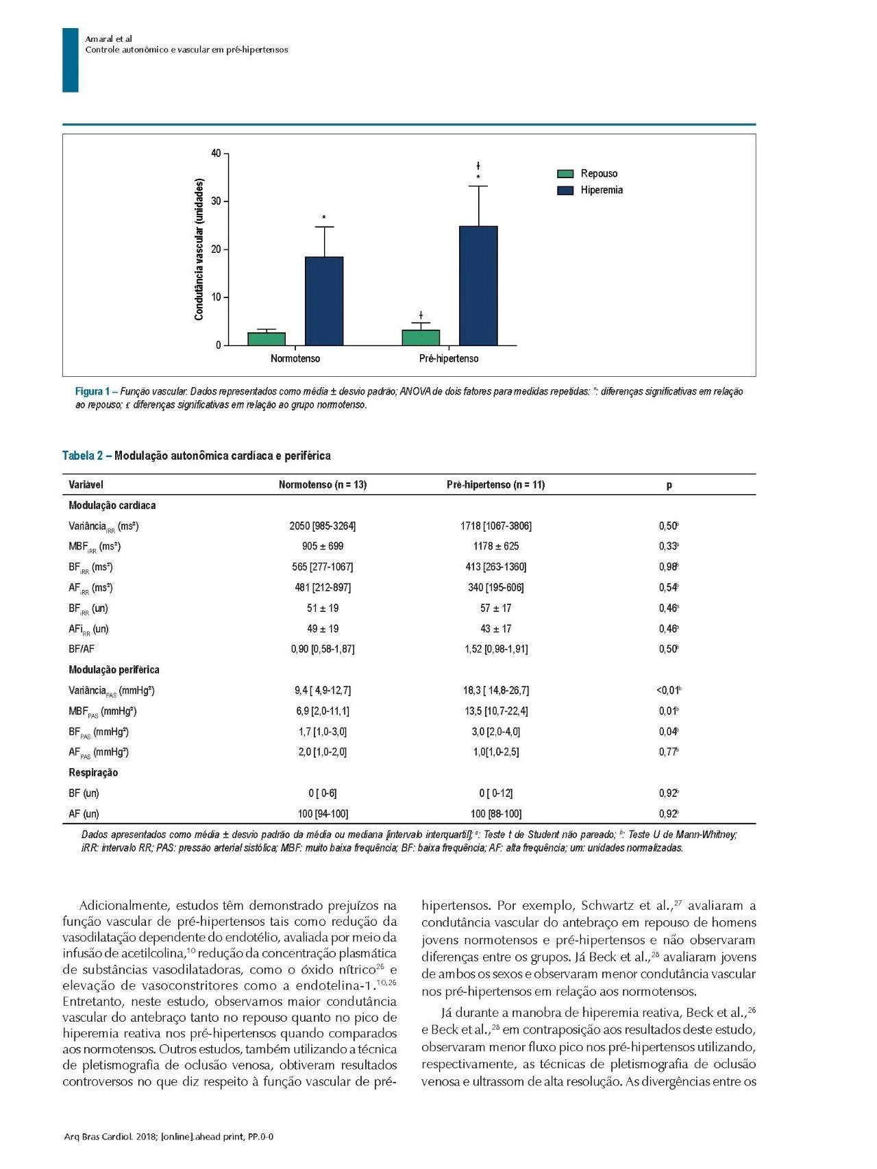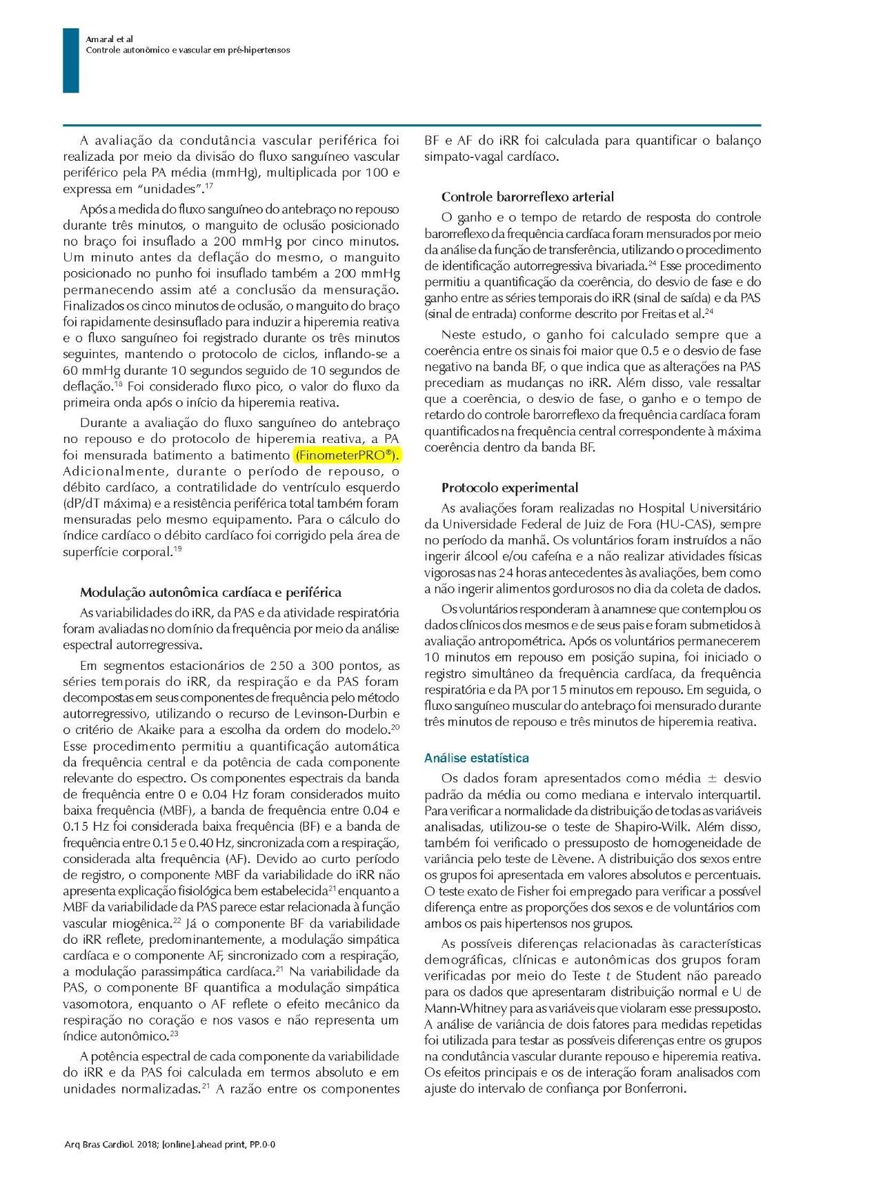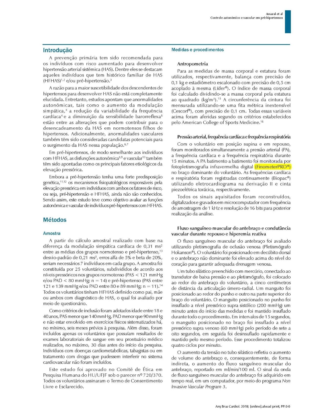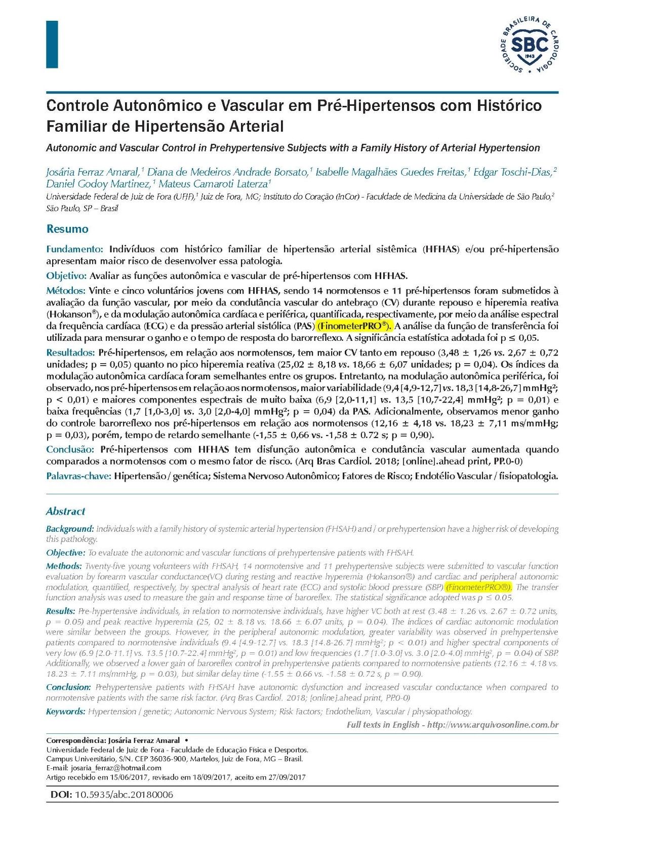 方法:25名FHSAH青年志愿者,14名血壓正常者和11名高血壓前期受試者分別在靜息、反應(yīng)性充血(Hokanson?)通過前臂血管傳導(dǎo)(VC)進(jìn)行血管功能評估;通過心率(ECG)和收縮壓(SBP)(FinometerPRO?)的頻譜分析來量化心臟和外周自主調(diào)節(jié)機(jī)制。使用傳遞函數(shù)分析來測量壓力反射的增益和響應(yīng)時間。本研究采用的統(tǒng)計顯著性標(biāo)準(zhǔn)p≤0.05。