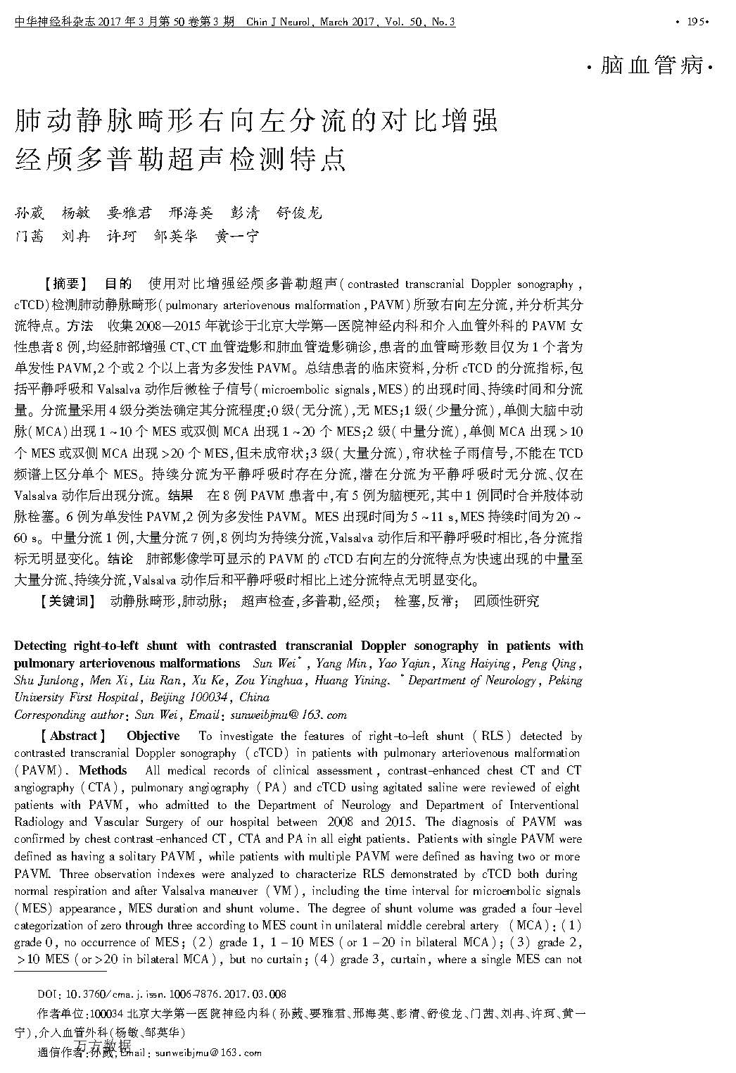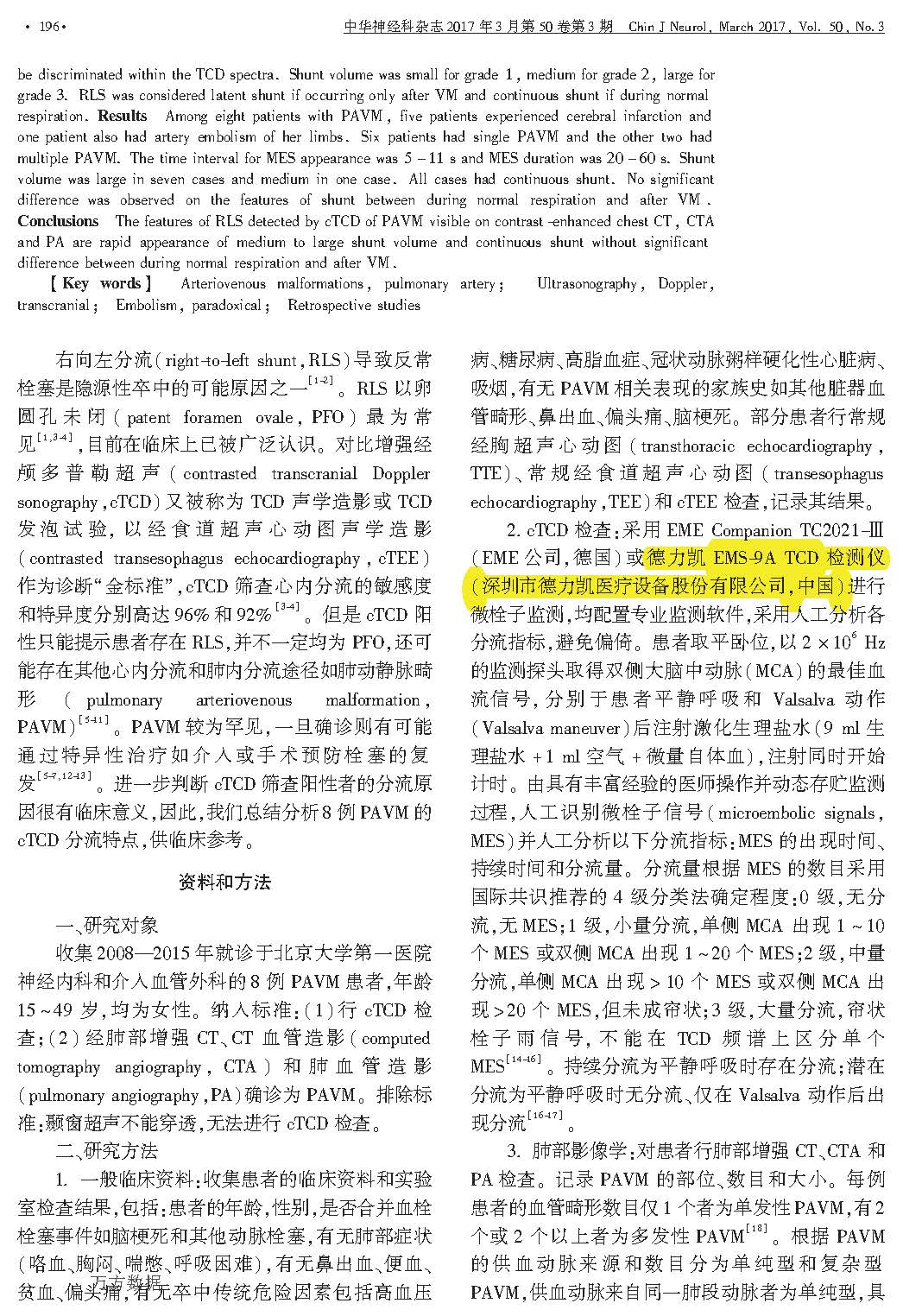 肺動(dòng)靜脈畸形右向左分流的對(duì)比增強(qiáng)經(jīng)顱多普勒超聲檢測(cè)特點(diǎn).pdf